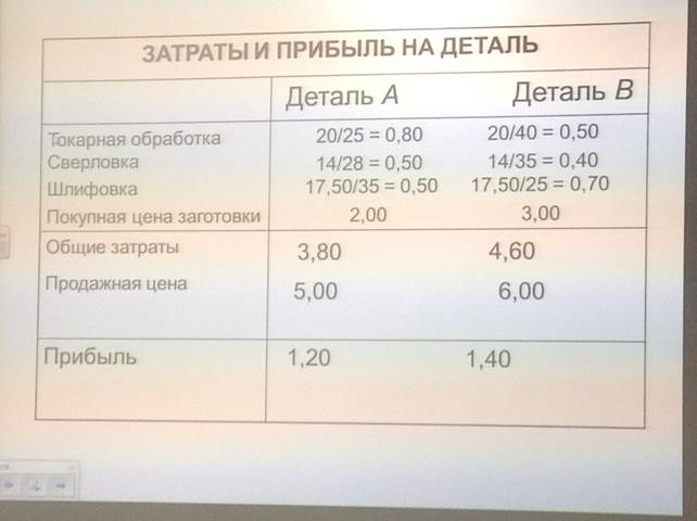Продажная цена деталей равна соответственно 5и 6 долларов. стоимость часа станочного времени составляет по трем типам используемых станков, 20;14;17,5 долларов.