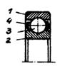 Конструкция: Подшипники качения (рис. 1) состоят из внутреннего 2 и наружного 1 колец, одно из которых устанавливается чаще всего на вращающийся вал, а другое - в неподвижный корпус; тел качения (шариков и роликов) 3 и сепаратора 4, разделяющего и направляющего тела качения. Тела качения перемещаются по дорожкам качения, расположенным на цилиндрических или конических поверхностях колец.
