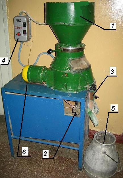 1 - дозатор ДТК, 2 - реле часу, 3 - течка з перекидним клапаном; 4 - пульт керування; 5 - мірна ємність; 6 - стіл