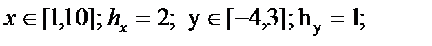 Завдання 3.2. Скласти алгоритм обчислення значення функцій при різних значеннях аргументів, заданих інтервалом зміни і величиною кроку, результат представити у вигляді таблиці