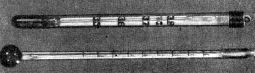 Для определения малых скоростей движения воздуха. Это- спиртовой термометр с цилиндрическим или шаровым резервуаром со шкалой, разделенной на градусы от 35 до 38 и от 33 до 40. Сначала определяется охлаждающая способность воздуха. Его опускают в горячую воду, нагревают до тех пор, пока спирт не поднимется до половины верхнего расширения капилляра. Прибор вытирают и вешают в месте наблюдения. Отмечают по секундомеру время, в течение которого столбик термометра опустится с 38 до 35.