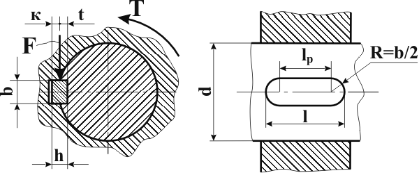 lp – рабочая длина шпонки;