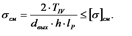 Напряжение смятия узких граней шпонки не должно превышать допускаемого, т.е. должно удовлетворяться условие:
