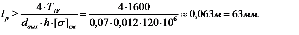 Из предыдущей формулы выражаем рабочую длину шпонки: