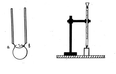 . Но из за трудности определения радиуса шейки капли применяют относительный метод определения коэффициента поверхностного натяжения жидкости. Если через один и тот же капилляр (бюретку) пропускать две разные жидкости, для одной из которых известен коэффициент поверхностного натяжения, то можно определить коэффициент поверхностного натяжения для второй жидкости. В расчетную формулу, вывод которой здесь приводится, радиус шейки капли не входит. Жидкость пропускают через капилляр так, чтобы она протекала отдельными каплями.