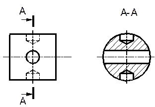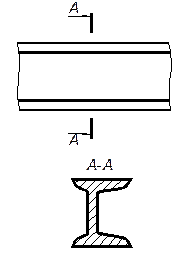 Располагать сечение на оси, совпадающей со следом секущей плоскости допускается только для симметричных сечений (рис. 7).Для нескольких одинаковых сечений, относящихся к одному предмету, линию сечения обозначают одной буквой и вычерчивают одно сечение, например сечение А-А (рис. 7).