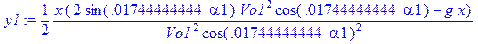 > y1:=1/2*x*(2*sin(alpha1*3.14/180)*Vo1^2*cos(alpha1*3.14/180)-g*x)/Vo1^2/cos(alpha1*3.14/180)^2;