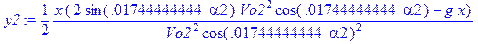 > y2:=1/2*x*(2*sin(alpha2*3.14/180)*Vo2^2*cos(alpha2*3.14/180)-g*x)/Vo2^2/cos(alpha2*3.14/180)^2;