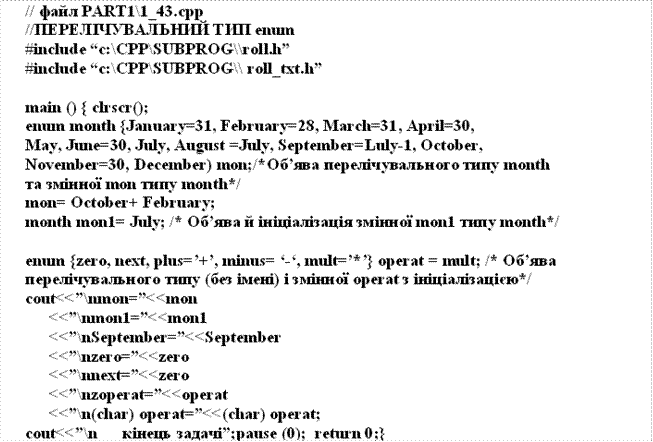 ПЕРЕЛІЧУВАЛЬНИЙ ТИП enum