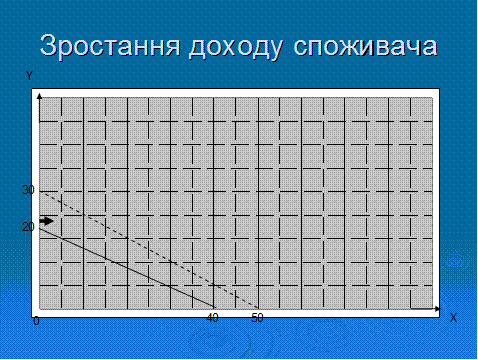 Графік споживчого вибору - взаємодія бюджетної лінії з кривою байдужості. Крива U1, розміщена нижче бюджетної лінії. Це свідчить про неповне використання доходу при придбанні даних товарів. Бюджетна лінія обов'язково має дотикатися до однієї з кривих байдужості.