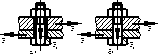 Возможны два принципиально отличных варианта таких соединений. В первом варианте болт ставится с зазором и работает на растяжение (рис. 16.10а). Затяжка болтового соединения силой FЗ создает силу трения, полностью уравновешивающую внешнюю силу F, приходящуюся на один болт, т.е. F = ifFЗ, где i – число плоскостей трения; f – коэффициент сцепления.