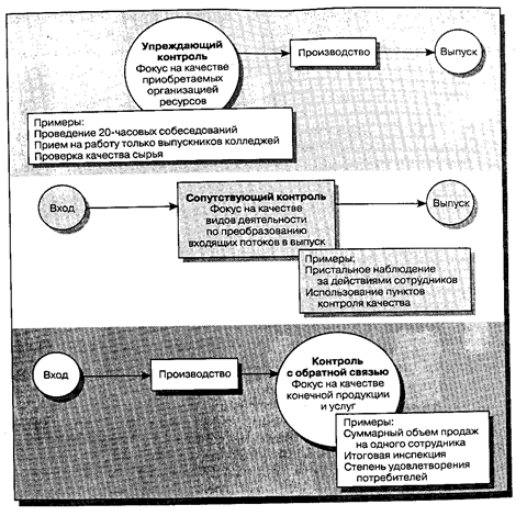 Эти три типа контрольных мероприятий формально называют упреждающим контролем, сопутствующим контролем и контролем с обратной связью.