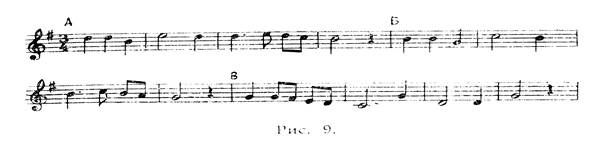 Всей группой выучить и выполнить шагами, сопровождая пением (называя ноты), следующую тему (рис. 9).