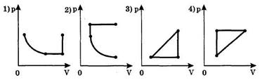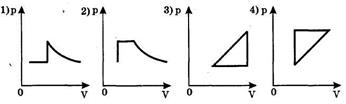 28. Идеальный газ сначала нагревался при постоянном давлении, потом его давление увеличивалось при постоянном объеме, затем при постоянной температуре давление газа уменьшилось до первоначального значения. Какой из графиков в координатных осях рV соответствует этим изменениям состояния газа?