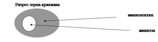 Крахмал - зернистое вещество, размеры зерен (гранул) находятся в пределах 0,09-0,003 мм. Зерно крахмала неоднородно. Внешний слой зерна (75 %) называется амилопектин, который, собственно, и образует клейстер. Внутренняя часть зерна (25 %) - амилоза или растворимый крахмал.