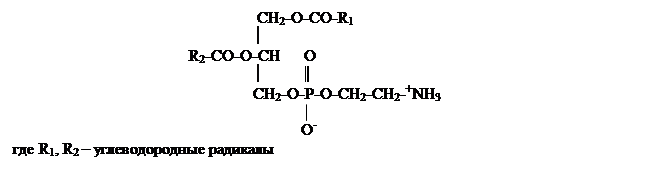 Фосфатидилэтаноламины представляют собой ацильные глицерофосфолипиды содержащие остаток этаноламина HO-CH2-CH2-NH2. Их строение может быть представлено следующей формулой:
