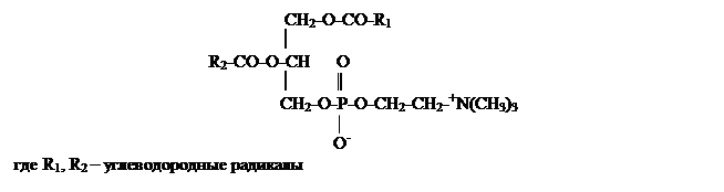 Фосфатидилхолины представляют собой ацильные глицерофосфолипиды содержащие остаток аминоспирта - холина [HO-CH2-CH2-+N(CH3)3](OH)- Их строение может быть представлено следующей формулой: