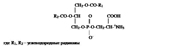 Фосфатидилсерины представляют собой ацильные глицерофосфолипиды содержащие остаток аминокислоты – серина HO-CH2-CH(NH2)-COOH Их строение может быть представлено следующей формулой: