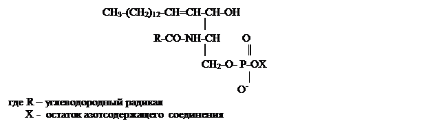 Среди этой группы липидов наиболее распространены церамидфосфорилхолины - соединения содержащие остатки холина [-CH2-CH2-+N(CH3)3]
