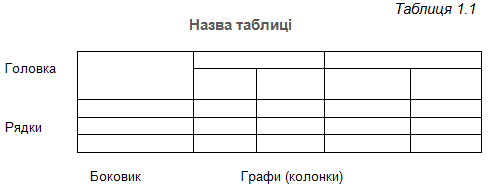 Заголовки граф мають починатися з великих літер, підзаголовки ¾ з маленьких, якщо вони складають одне речення із заголовком, і з великих, якщо вони є самостійними. Висота рядків має бути не менше 8 мм. Графу з порядковими номерами рядків до таблиці включати не треба.
