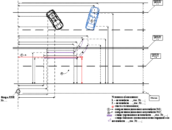 2. Фиксировать расположение зон повреждений автомобиля относительно опорной поверхности (поверхности покрытия дороги).