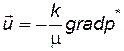то есть, получаем уравнение, линейно связывающее скорость фильтрации с градиентом давления.