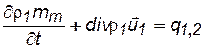 Здесь q1,2 – масса жидкости, поступающей из пористых блоков в трещины за единицу времени на единицу объёма (размерность МL-3T-1, где М – размерность массы, L – расстояния и Т – времени).