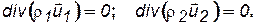 При этом предполагается, что в каждом элементарном объёме трещинно-пористого пласта содержится большое число пористых блоков, так что в окрестности каждой точки вводится две скорости фильтрации, два давления, относящиеся к средам 1 и 2. На основании сказанного, уравнения неразрывности выписываются для каждой из сред, а переток учитывается членом q1,2. Наличие перетока эквивалентно существованию внутренних источников жидкости в выделенном объёме.