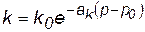 В связи с уменьшением пористости при увеличении давления, также по аналогичному закону уменьшается проницаемость