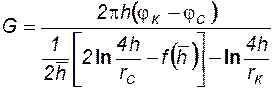 Если толщина пласта много больше радиуса скважины, то для расчета дебитов несовершенной по степени вскрытия скважины можно пользоваться более простой формулой Н.К.Гиринского: