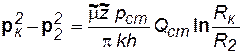 Уравнение притока реального газа по двухчленному закону фильтрации к совершенной скважине записывается в виде, аналогично идеальному