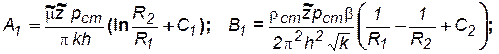 В первой области фильтрация происходит по двухчленному закону и плоскорадиальное течение нарушается из-за перфорационных отверстий. Уравнение притока имеет вид (3.56), но несовершенство учитывается коэффициентами С3 и С4, а R2 заменяется на R1 и R1 - на rc.