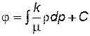 соотношение для плотности (4.8) и считая μ =const, k =const, после интегрирования данного выражения при пренебрежении членом, содержащим (р-р0)2, получим с учетом (2.8)