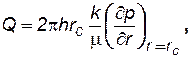 Постоянное забойное давление. Объемный дебит возмущающей скважины определяется по формуле