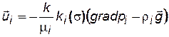 Уравнения движения для многофазной фильтрации. При записи закона фильтрации предполагаем, что в любой точке каждая из фаз находится в термодинамическо - равновесном состоянии. Тогда для течения двухфазной смеси можно ввести в рассмотрение относительные проницаемости ki( s ) и капиллярное давление d рк ( s ), зависящее только от насыщенности.