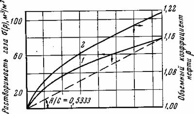 Объемный коэффициент нефти b (р) характеризует изменение объема нефти вследствие изменений давления и количества растворенного газа. Величина b (р) есть отношение удельных объемов нефти в пластовых и атмосферных условиях.