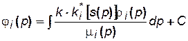 где i=f, г; k*i(s) = ki/k,смотря по тому, движение какой фазы изучается – жидкой или газовой.
