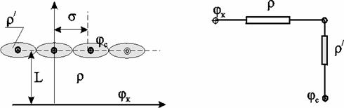 Электрическая схема в случае одной батареи (рис.7.12) имеет вид (рис.7.13). На рис.7.12 затемнены области внутреннего сопротивления.