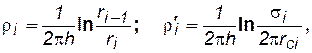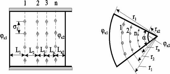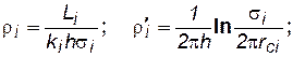 где Li – расстояние между батареями (для i = 1 - L1 = Lк1); ri – радиусы батарей (для i = 1 - r0 = rк); ki – число скважин в батарее.