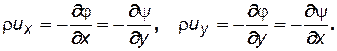 Представим себе, что имеем плоский фильтрационный поток любой жидкости или газа, подчиняющийся закону Дарси. При рассмотрении одномерных течений было показано, что если фильтрация протекает по закону Дарси, существует потенциальная функция j, удовлетворяющая уравнению Лапласа. Но если существует потенциальная функция j, то наряду с ней существует функция y, также удовлетворяющая уравнению Лапласа. Зная функцию j, всегда можно определить функцию y путем интегрирования уравнения (7.37).