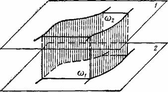 Рис. 7.20. Распределение потока между двумя параллельными плоскостями 1 и 2