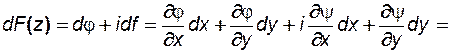Массовую скорость фильтрации можно очень просто определить в любой точке пласта, найдя производную от характеристической функции по комплексному аргументу z. Чтобы это показать, составим полный дифференциал от характеристической функции F (z):