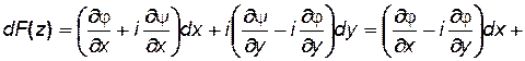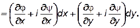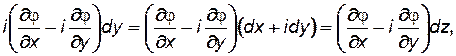 Вынося во второй скобке множитель i за знак скобки и воспользовавшись затем уравнениями Коши – Римана (7.37) получим: