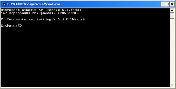 cd C:\Nexus5 (не забываем "С" изменить в случае, если вы создавали папку на диске с другим именем)