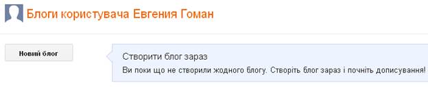 4. Створіть свій перший блог. Для цього натисніть на кнопку Новий блог (Рис. 1.3).