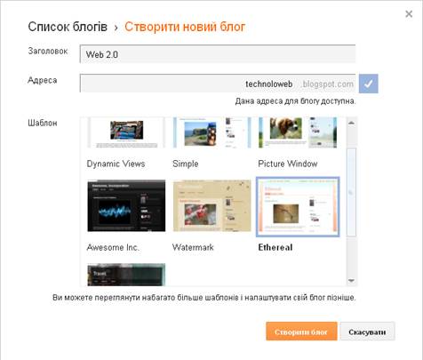 - Заголовок: задайте назву вашому блогу (потім цю назву можна буде змінити);