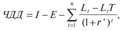 где I — стоимость предмета лизинга; Lt — лизинговый платеж в t -м периоде, Е — платеж аванса; T — ставка налога на добавленную стоимость (НДС); r * — скорректированная на ставку НДС норма дисконта r * = r (1 — T).