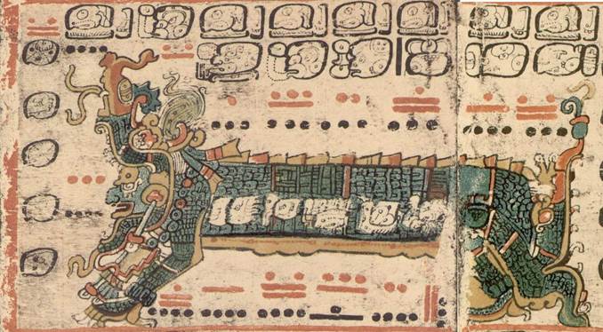 Текст на туловище ящера (D4b – 5b), из чьей пасти появляется Ицамна, вероятно содержит изложение одного из пророчеств.