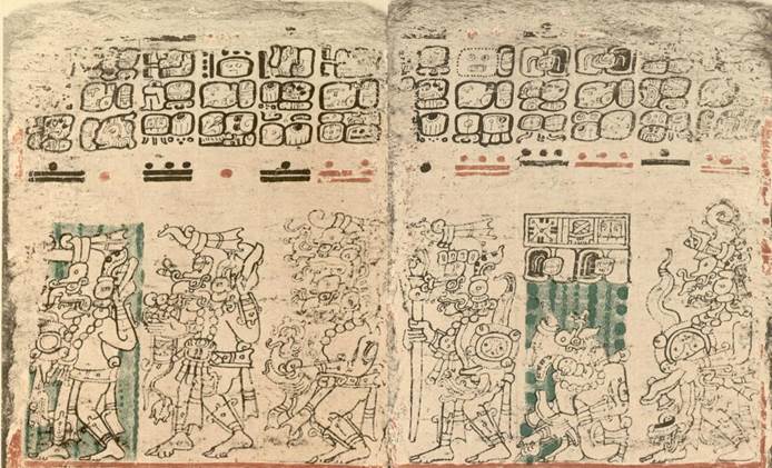 D44(65)а, i. <9 (дней) до 12 (числа)>. <…> к Женщине пришёл в небеса дождливый Чаак; у белого столпа Маисовый. 11 (дней) до 1 (числа).