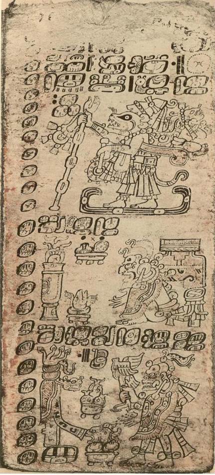 а. (Начальные дни) Маник’ – Ламат. Пришёл на запад Чёрный Оборотень, наш Мам. Костлявый – его ноша, это год смерти. 6 (раз курения) смолы пом, 6 (раз курения) смолы ч’ахальте Щедрому (?).
